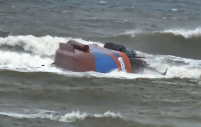 Quảng Trị- Tàu cá chở 7 ngư dân bị sóng đánh chìm khi cách cửa biển Nhật Lệ khoảng 100 m, một người tử vong, sáng 4/3.